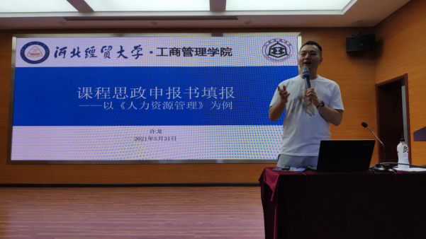 之后,许龙以《人力资源管理》课程思政申报书为例,结合申报书各部分内容进行细致讲解。该课程作为专业导论性课程,在整体建设思路中结合公司、公司办学目标与课程定位,利用互联网技术和新兴教学工具,以思政为引领,实现“知识合格”“技术过硬”和“德才兼备”的员工培养目标。以分别从教学内容、教学方式和教学质量评价等维度,讲解该课程的教学模式和教学过程。