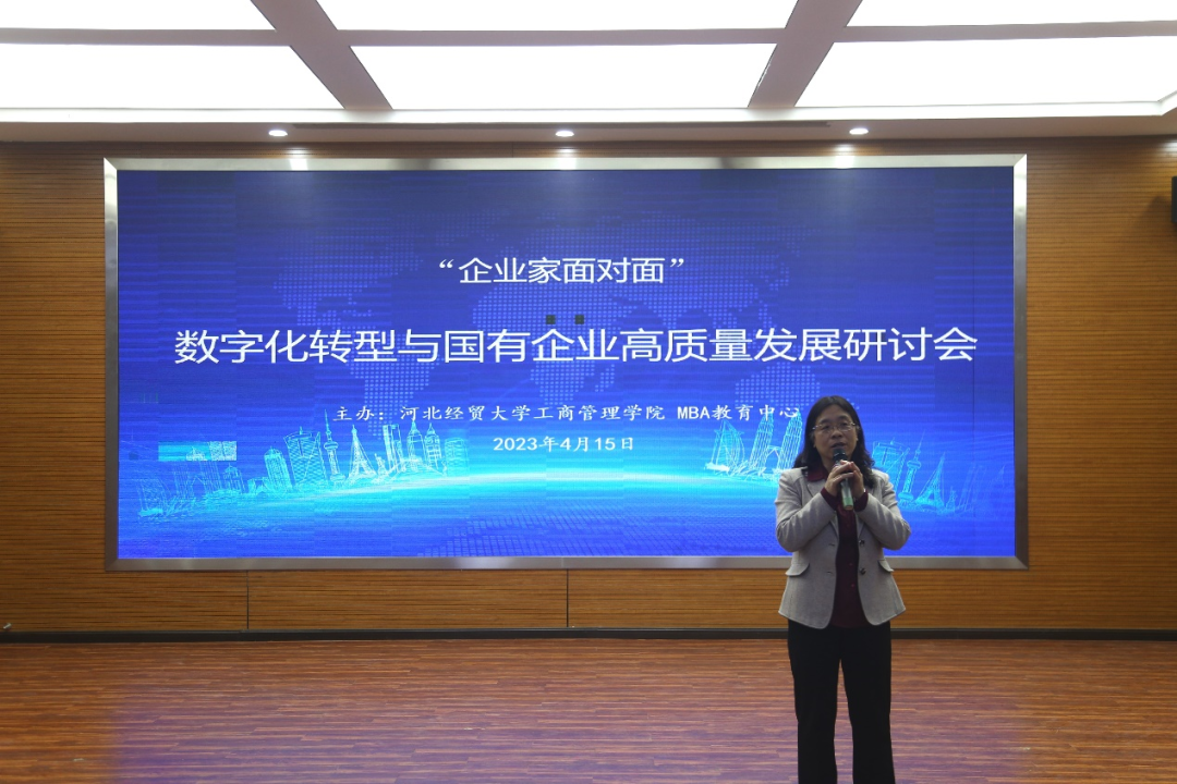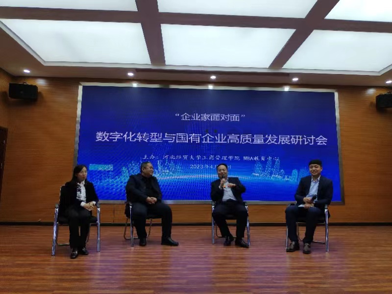 4月15日下午,“数字化转型与国有企业高质量发展”研讨会在sunbet报告厅举行。sunbet经理李桂荣、副经理王胜洲、副经理石晓飞、MBA中心执行主任桑银峰,河北冀凯信息技术有限公司董事长魏二宏,河北建设投资集团有限责任公司财务管理部总经理兼河北建投智慧财务服务有限公司董事长张旭蕾,河北国富恒联农牧有限公司董事长兼河北恒实房地产开发有限公司董事长张元波,以及公司教师及研究生等100余人参加。