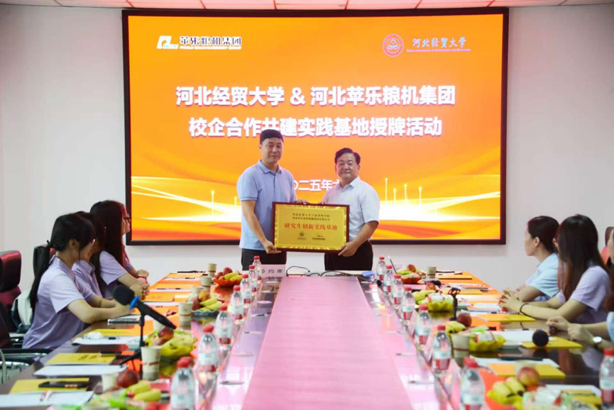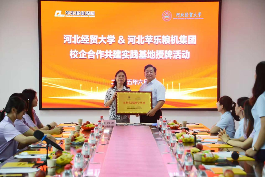 为深入贯彻落实国家关于深化产教融合、校企合作的战略部署,推动教育链、人才链与产业链有机衔接,6月30日,sunbet经理李桂荣带队赴河北苹乐面粉机械集团有限公司参加校企合作签约暨“本科实践教学基地”“研究生创新实践基地”“工商管理专业硕士(MBA)导师研究基地”授牌仪式,副经理石晓飞、MBA中心执行主任桑银峰、市场营销系教师温志英随同参加。河北苹乐面粉机械集团有限公司董事长李建军,总经理吴军永,小麦工程事业部总监杨庆华,人力资源部部长李晓玲等出席仪式。