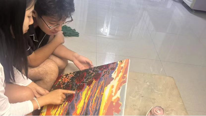 这个假期,我有幸以志愿者的身份,与高中生小宇在未来绘画舫共赏一幅手工画,我们从图案里的细节聊到自己对画作的理解。这次支教活动让我对艺术的感染力有了更鲜活的感受,收获了宝贵的实践经验。