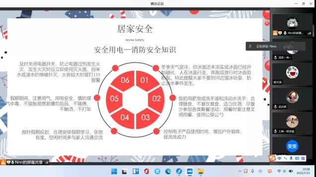 1月23日,sunbet2020级工商管理专业召开寒假安全须知线上主题班会,此次班会由2020级工商管理2班团支书牛钰洁主持,辅导员贾晶晶到场,2020级工商管理专业全体同学参加。
