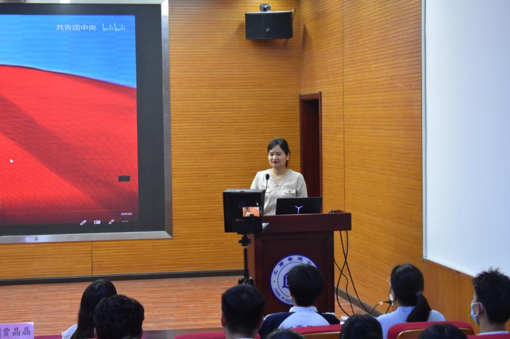 会议伊始,贾晶晶为同学们播放了共青团团歌《光荣啊,中国共青团》,以此引出本次团课的主题。随后,贾晶晶为同学们详细地讲解了共产主义青年团的地位和意义,帮助同学们更进一步了解和认识这一组织。紧接着,贾晶晶告诫同学们要自觉遵守国家的法律和团的纪律,努力学习马克思列宁主义、毛泽东思想、邓小平理论、“三个代表”重要思想、科学发展观、习近平新时代中国特色社会主义思想等指导思想。