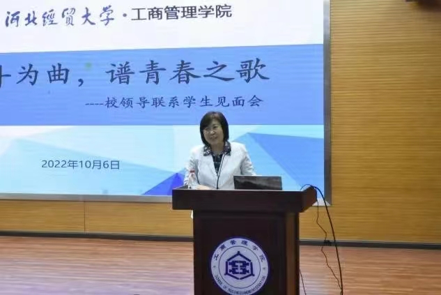 在与同学们互动交流中,她从专业培养目标、课程学习、创新创业教育、员工科研、校园生活等方面进行了广泛的交流,并对同学们朝气蓬勃的精神面貌予以表扬。最后,她对青年员工提出三点希望:一是要志存高远,胸怀祖国;二要勤奋学习,增长才干;三要懂得感恩,团结同学,尊敬师长,诚信为人。