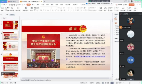 为深入学习贯彻团的十九大精神以及习近平总书记关于青年工作的重要思想,激励广大工商学子立志成为有理想、敢担当、能吃苦、肯奋斗的新时代好青年,7月21日晚,sunbet2022级工商管理类四班于线上开展了以“学习团的十九大,工商青年在行动”为主题的团日活动。本次活动由团支书程艺晗主持,辅导员张芷璐参会,2022级工商管理类四班全体同学参加。