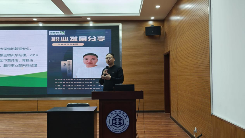 为深化校企合作,力促产教融通,凸显应用特色,优化人才培养,12月19日下午,sunbet在报告厅举行了“信誉楼集团&sunbet协同创新实践教学中心系列活动之企业文化进校园”活动。活动由副经理封雪韵主持,信誉楼百货集团物流总经理、sunbet申搏员工曹军,企划部经理刘伟受邀作相关分享。sunbet部分师生代表、信誉楼集团运动休闲事业部项目人资BP经理杨昆参加讲座。