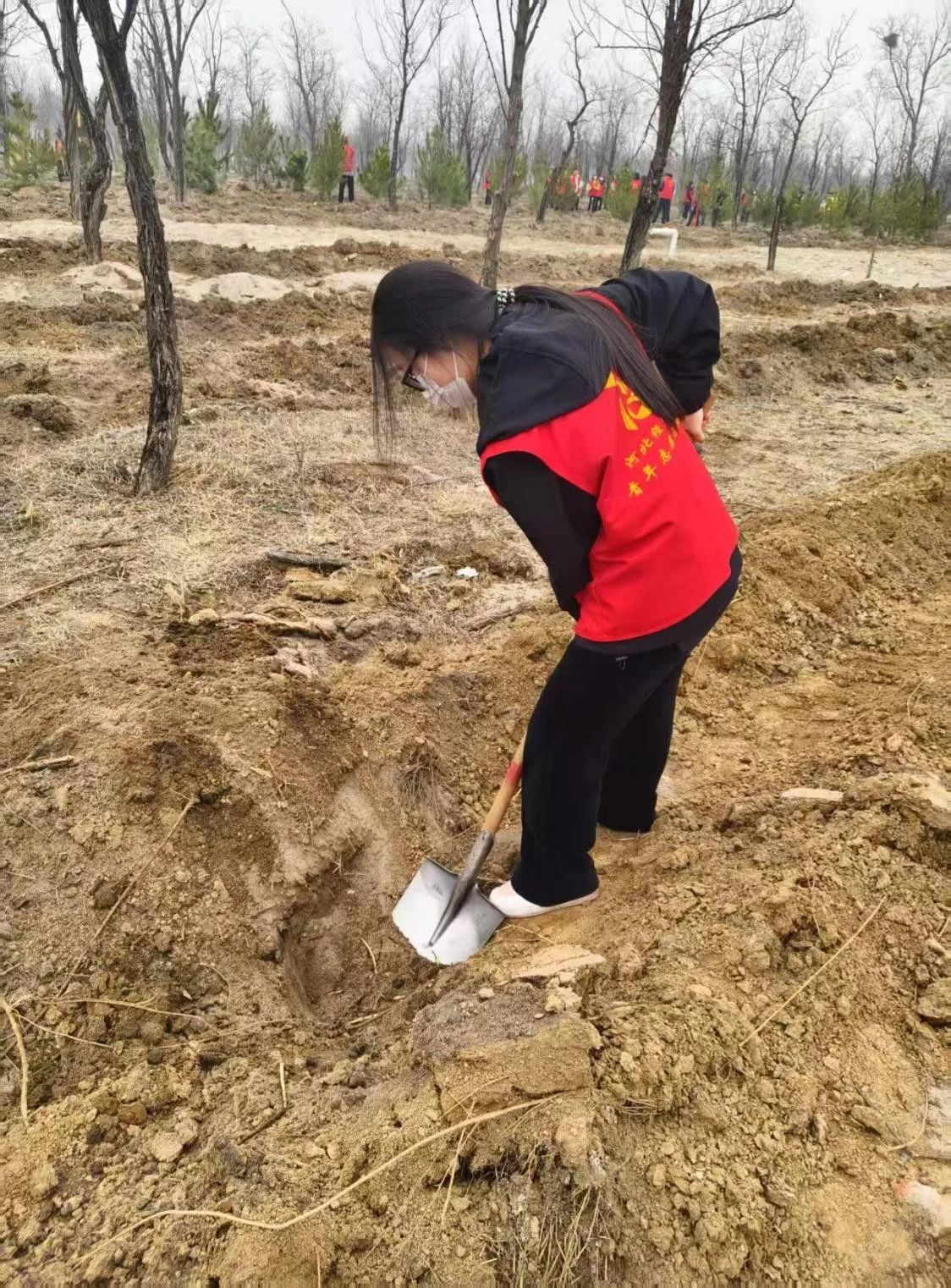 随后,郑雯今带领同学们聚焦植树活动的难忘经历。活动中的同学们热情高涨,分工协作,挥锹铲土、扶苗填坑、提水浇灌,认真细致的做好每一个步骤,大家齐心协力,种下树苗。看着亲手种下的树苗在春风中挺立,同学们心中满是成就感,眼里更充满了为生态环境贡献力量的自豪。