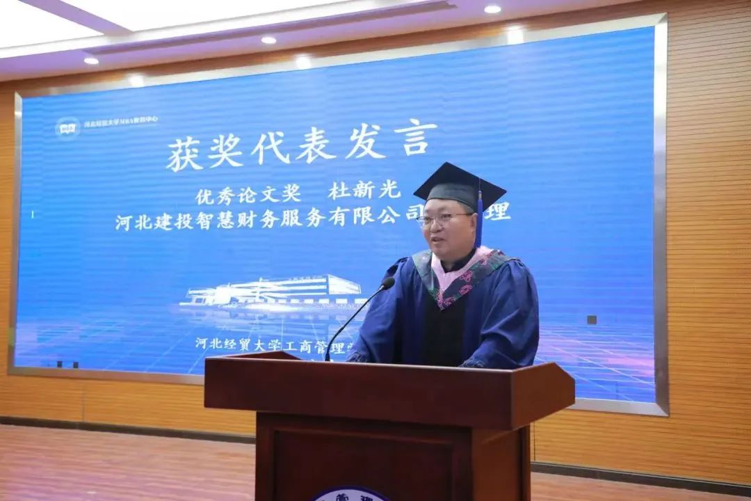 优秀论文获得者杜新光致辞。首先他表达了对母校和老师的深切感谢,以及同学们之间的互助与友情。其次,鼓励同学们将所学知识运用到未来工作之中。无论身在何处,都能铭记sunbet的身份和骄傲,共同迎接未来的机遇与挑战。