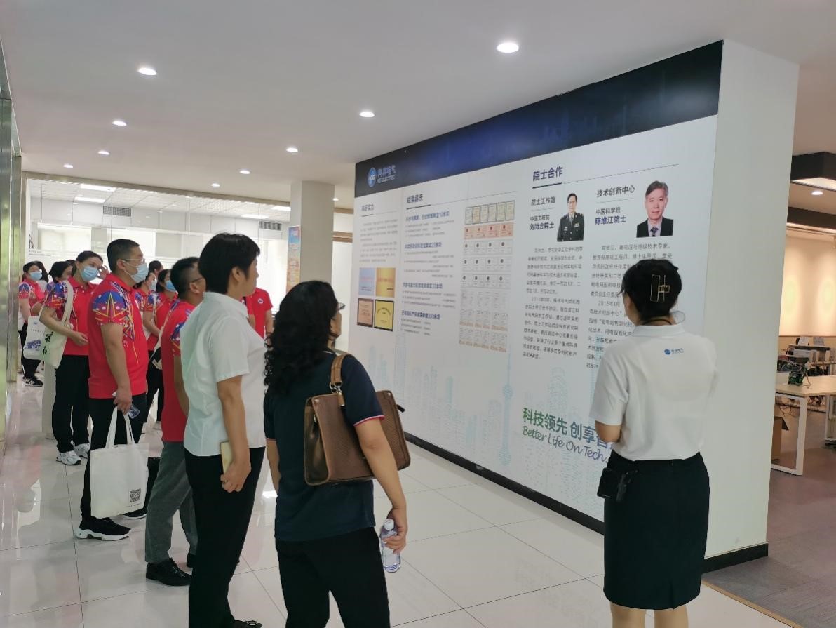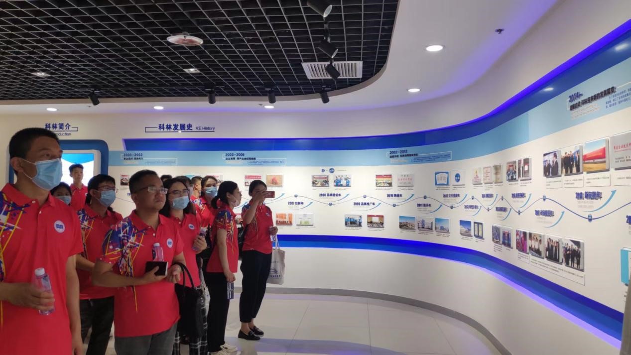 接下来,师生步入科林展厅。在展厅一楼,工作人员向大家介绍了科林电气的发展历程,所获荣誉、研发成果、先进设备以及一些高端项目。展厅二楼的党建文化展厅由一篇“科林赋”作序,呈现了科林电器丰富多彩又深切浓厚的党建活动,其“激情创业 实业报国”的精神令大家为之动容。