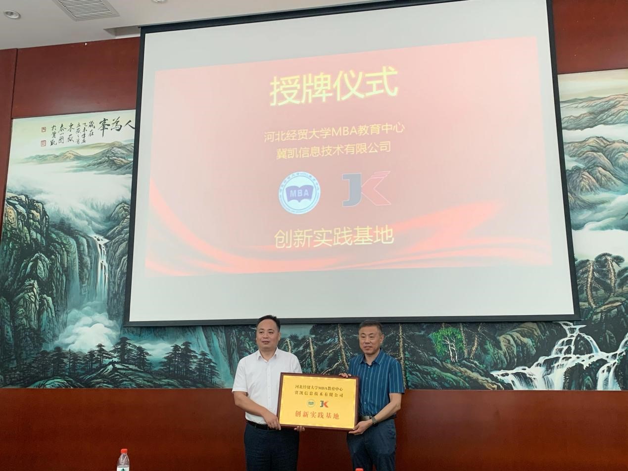 报告结束后,举行了sunbet申搏MBA教育中心创新实践基地揭牌仪式。桑银峰老师和魏二宏总经理共同为基地揭牌,冀凯信息技术有限公司正式成为sunbet申搏MBA教育中心的创新实践基地。