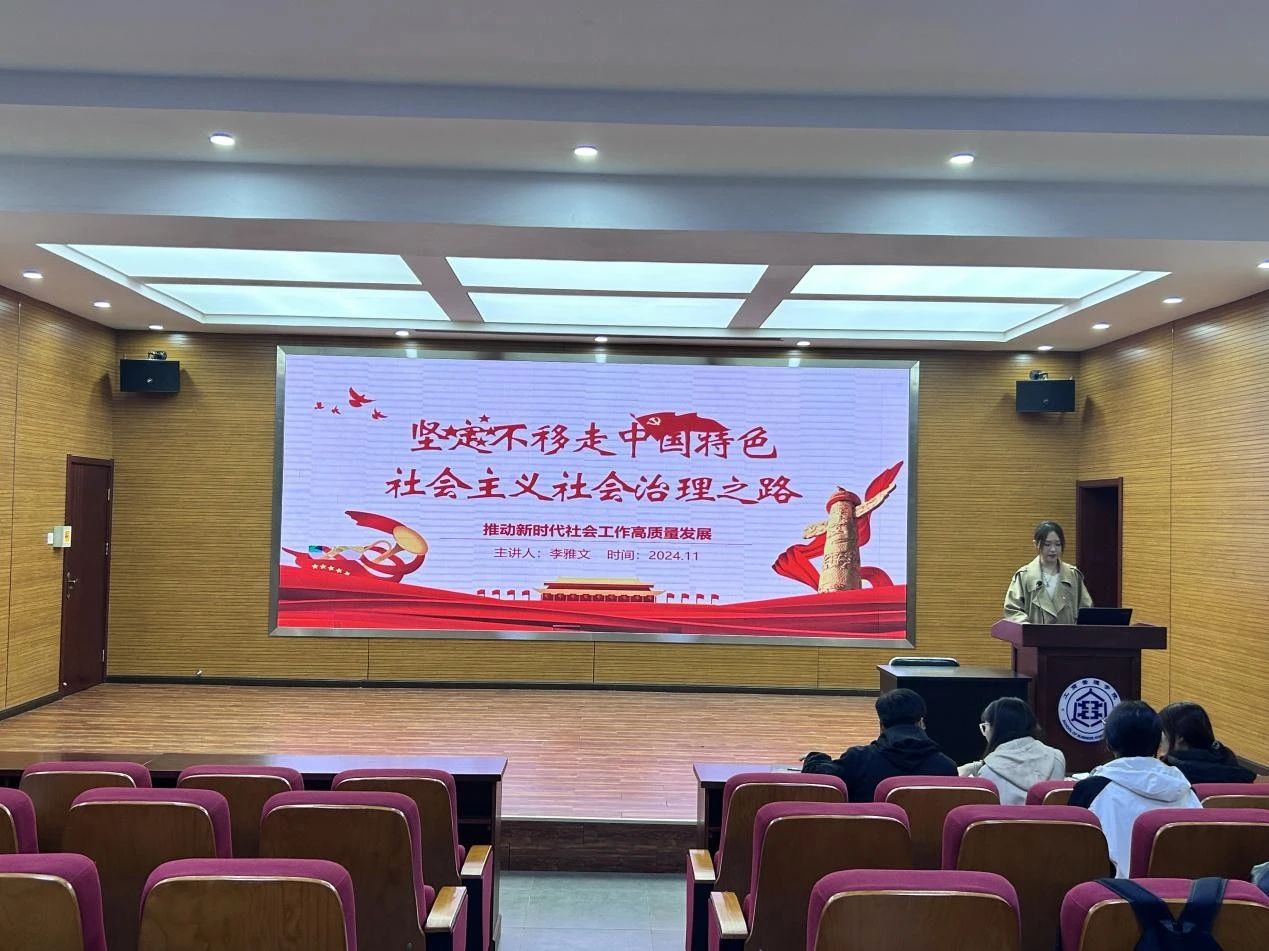2024级工商管理专业研究生李雅文在微党课上对习近平总书记近期在中央社会工作会议上作出的重要指示——“坚定不移走中国特色社会主义社会治理之路,推动新时代社会工作高质量发展”进行深入解读。李雅文表示习近平总书记的讲话不仅反映了党和国家对社会工作的高度重视,也标志着我国社会工作进入了一个新的发展阶段。当前,我国社会格局发生重大变化,面对新的形势和任务,必须深刻理解党领导下社会工作的内涵与要义,在国家发展大局中定位社会工作的重大意义,按照党的二十届三中全会关于健全社会治理体系的部署要求,走好新时代党的群众路线,不断推动新时代社会工作高质量发展。李雅文呼吁,要把学习贯彻习近平总书记重要讲话精神作为重点内容和必修课,在推动新时代社会工作高质量发展中充分体现青年学子责任担当。