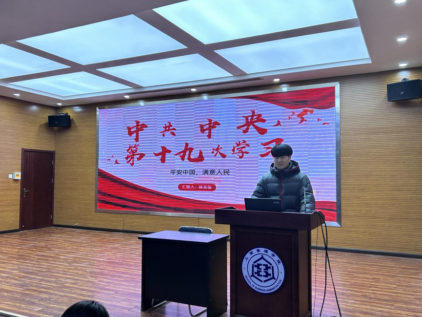 2024级工商管理专业研究生陈克玺在微党课上对习近平总书记在中央政治局第十九次集体学习时的重要讲话精神进行了深入解读。他表示,习近平总书记的讲话深刻阐述了贯彻总体国家安全观、建设更高水平平安中国的全局性、战略性意义,明确部署了推进平安中国建设的主攻方向、重点任务、根本保证,为我们在新征程上继续推进国家安全体系和能力现代化指明了前进方向、提供了重要遵循。陈克玺强调,要坚定不移贯彻总体国家安全观,在国家更加安全、社会更加有序、治理更加有效、人民更加满意上持续用力,把平安中国建设推向更高水平。