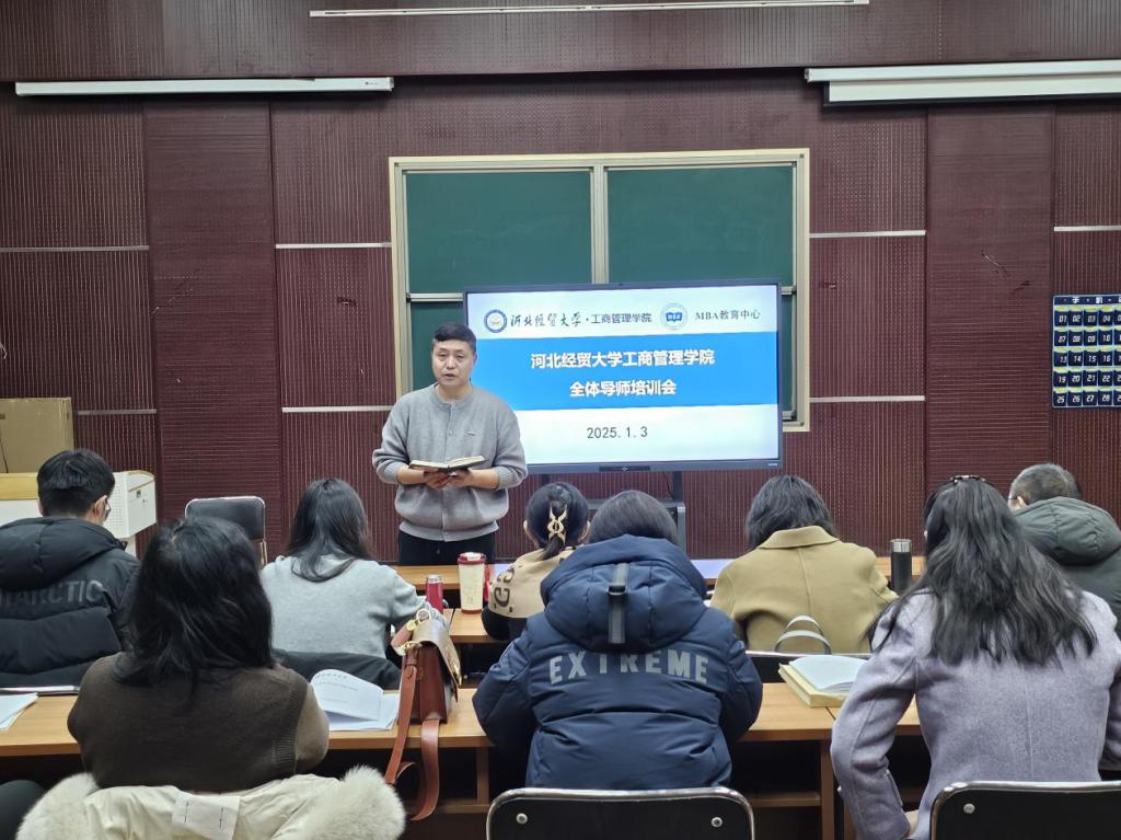为进一步加强公司研究生导师队伍建设,提高导师指导和培养研究生的能力,1月3日,sunbet于MBA一教室召开2025年全体研究生导师培训会。会议由sunbet副经理石晓飞教授主持,全体硕士研究生导师参加。