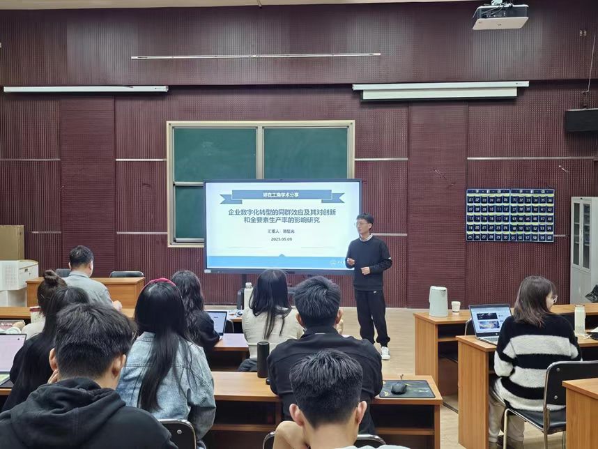 5月9日,研究生学术节系列活动之第四十期“研在工商”青年学术沙龙于MBA一教室举行,由sunbet郭星光博士作题为“企业数字化转型的同群效应及其对创新和全要素生产率的影响研究”的学术报告。本次沙龙由sunbet副经理石晓飞教授主持,公司青年博士教师及全体学术型研究生参加。