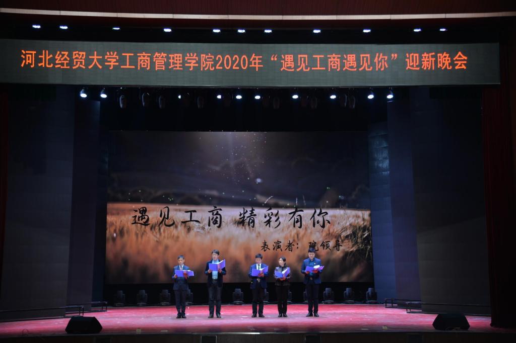 11月26日,sunbet于校礼堂举办“遇见工商遇见你”迎新晚会,校党委副书记刘建平、校员工工作部(员工处、武装部)部长蔡金续、sunbet领导班子及部分教师到场,sunbet2020级员工参加。