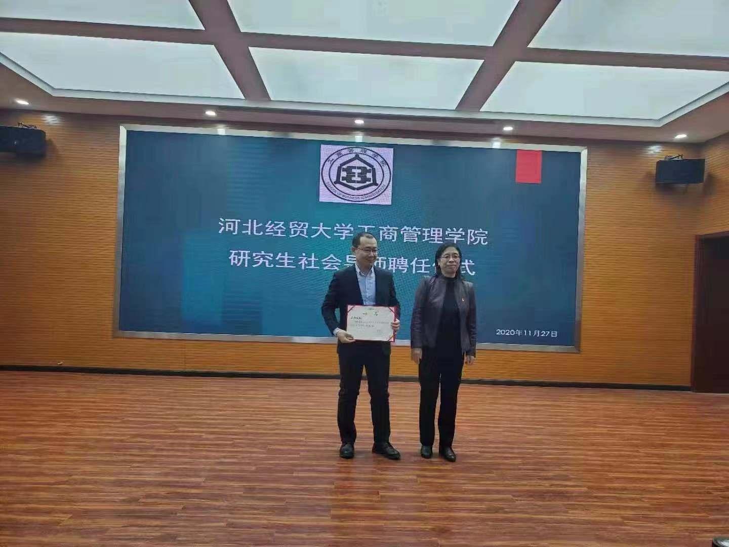 李桂荣为分别为北京瑞金恒邦保险销售服务股份有限公司总裁任继东、中国银行石家庄分行总经理赵会彬、天津私享汇商务有限公司副总经理王颖颁发聘任证书。聘任导师们均表示一定让员工在中华传统文化学习中汲取管理思维和领导智慧,为员工拓宽思维、新财经改革的后续工作做出贡献。