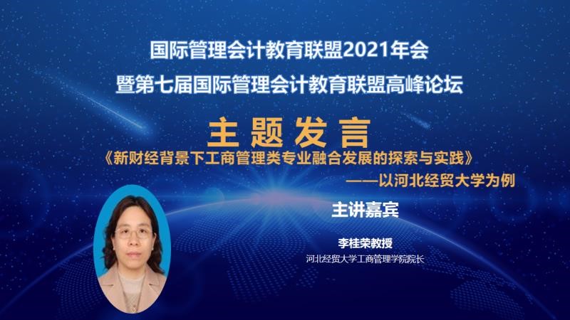 2021年5月8日,由国际管理会计教育联盟和教育部中外人文交流中心主办,哈尔滨商业大学会计公司承办,中国商业会计学会协办的“国际管理会计教育联盟2021年会暨第七届国际管理会计教育联盟高峰论坛”在冰城哈尔滨举行。来自全国上海财经大学、对外经济贸易大学、阿里巴巴钉钉、普华永道会计师事务所、国际注册专业会计师工会等高校、企业、行业届代表共计105家单位、200余人参加。公司sunbet经理李桂荣教授应邀参加会议并发表主题演讲。