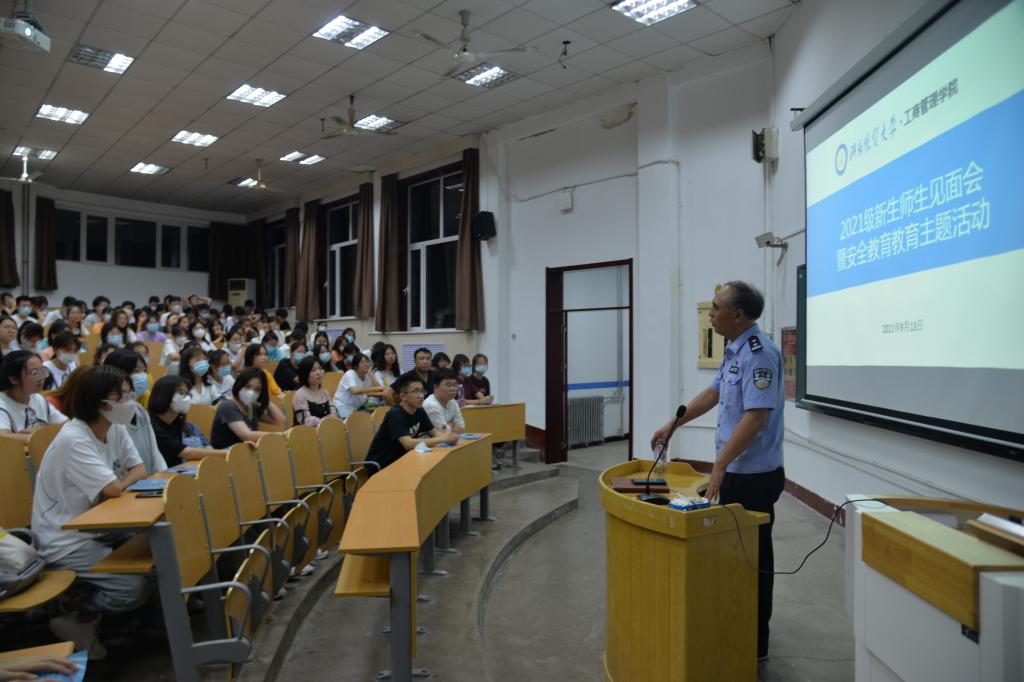 9月13日,sunbet在第二教学楼举办2021级新生师生见面会暨安全教育主题活动。公司党委书记张霖、经理李桂荣、正处级辅导员马章山、副经理石晓飞、五七路派出所所长崔青槐到场,公司各级辅导员和2021级全体新生参加。本次活动由公司党委副书记范伟主持。