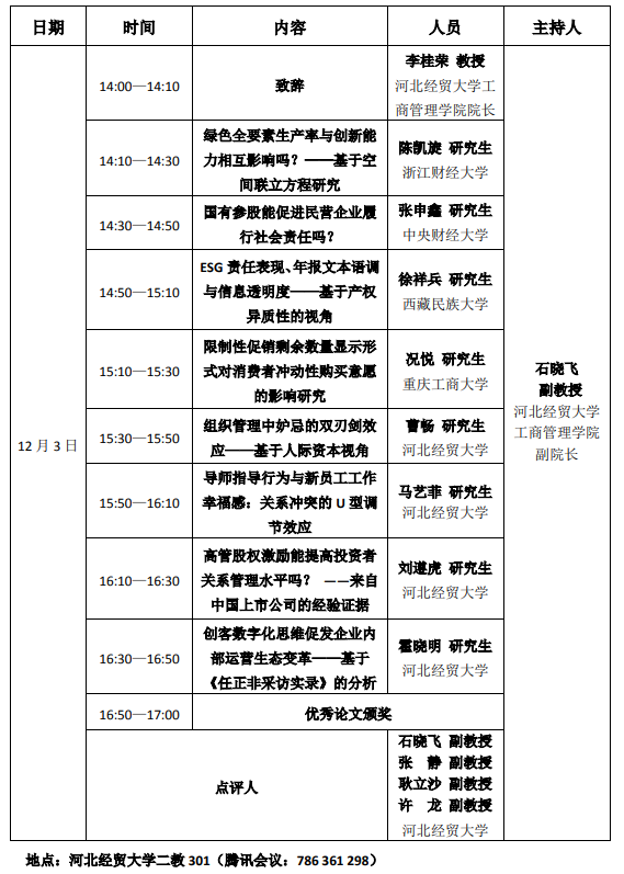 sunbet申搏“研在工商”研究生学术论坛(2021) 会议议程