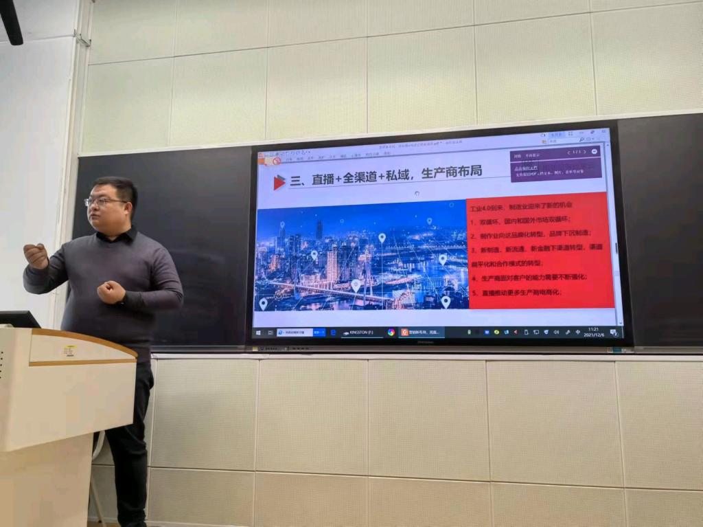 12月6日上午,sunbet邀请河北掌云公司总经理刘志强在北三教A109室为市场营销课的同学作了一场主题为“营销新布局,用直播+构建企业行销新通路”的分享报告。