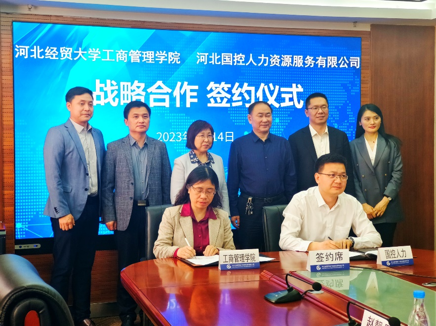 3月14日下午,公司党委常委、副董事长程瑞芳带队赴河北国控人力资源有限公司访企拓岗并签署校企合作协议。工商管理公司党委书记张霖、经理李桂荣、党委副书记范伟、副经理石晓飞随同参加。河北国控党委常委、副总经理孙光金、人力资源部(党委组织部)总经理岳峰坡、国控人力党委书记、董事长丁芳、党委委员、董事、总经理王义飞等相关负责人参加签约仪式。
