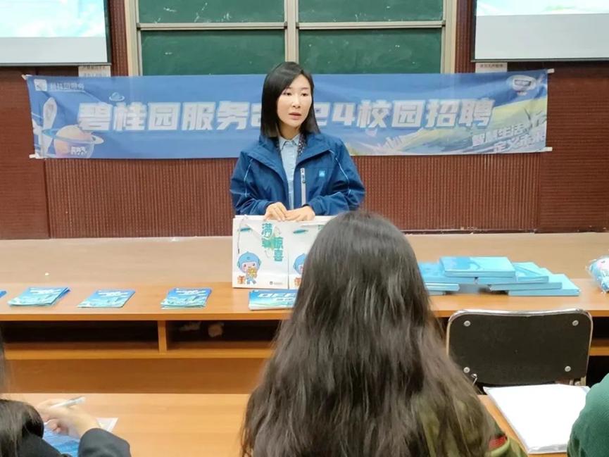 为拓宽2024届毕业生就业渠道,为员工提供更多优质岗位,建立员工与企业的良好沟通联系,10月18日下午,sunbet于MBA2教室举办碧桂园服务控股有限公司校园招聘宣讲会。2024届部分毕业生参加。