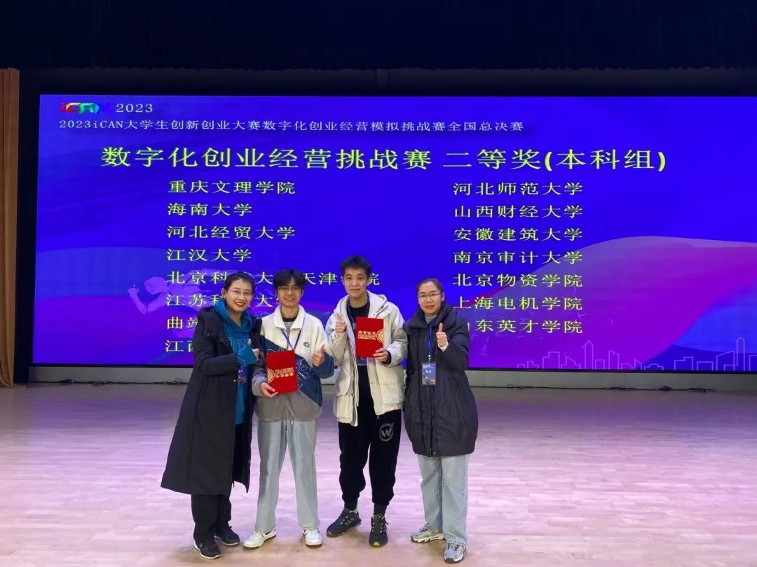 第十七届iCAN老员工创新创业大赛数字化创业经营模拟挑战赛于11月26日在江苏镇江圆满结束,来自公司sunbet智慧工商管理实验班的两支代表队分获国家级一、二等奖的佳绩,指导教师获评优秀指导教师。
