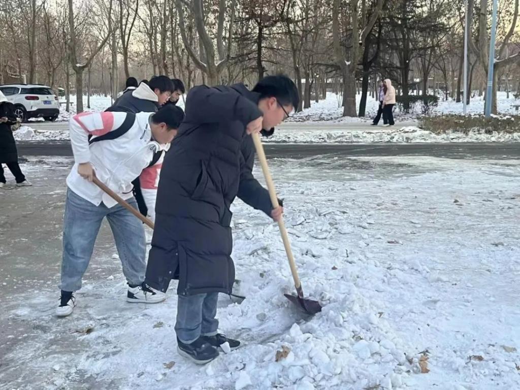 扫雪过程中,同学们拿起铁锹等工具,有条不紊地清扫校园中的积雪,大家不畏严寒,干劲十足,忙碌的身影构成了一道靓丽的风景线,充分发扬了工商学子不怕苦不怕累的无私奉献精神。通过集体的努力,为同学们打通了安全出行通道,营造了安全畅通的出行环境。接下来,请和工小商一起来看看同学们的活动心得吧!