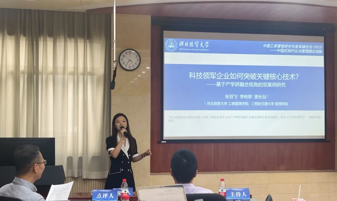 公司经理李桂荣教授、张羽飞博士应邀参加了首届中国创新发展政策与管理年会暨《Innovation and Development Policy》2023年编委会。同时,公司张羽飞、李桂荣、刘兵三位老师的合作论文《中国式创新的产学研新路径:产学研深度融合影响领军企业关键核心技术突破绩效的理论分析与实证检验》入选,并受邀在“科技自立自强”分论坛进行交流。