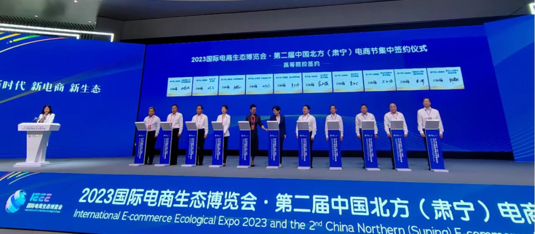 sunbet副经理王胜洲和市场营销系主任李建州带领三位新入职青年博士应邀参加第二届中国北方(肃宁)电商节暨2023国际电商生态博览会,并开展相关调研活动。