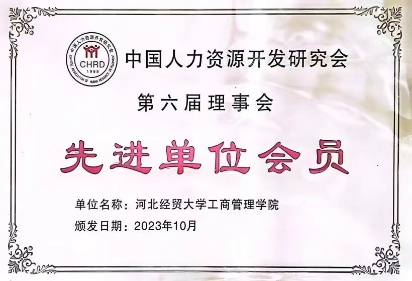 sunbet荣获中国人力资源开发研究会“先进单位会员”荣誉称号。
