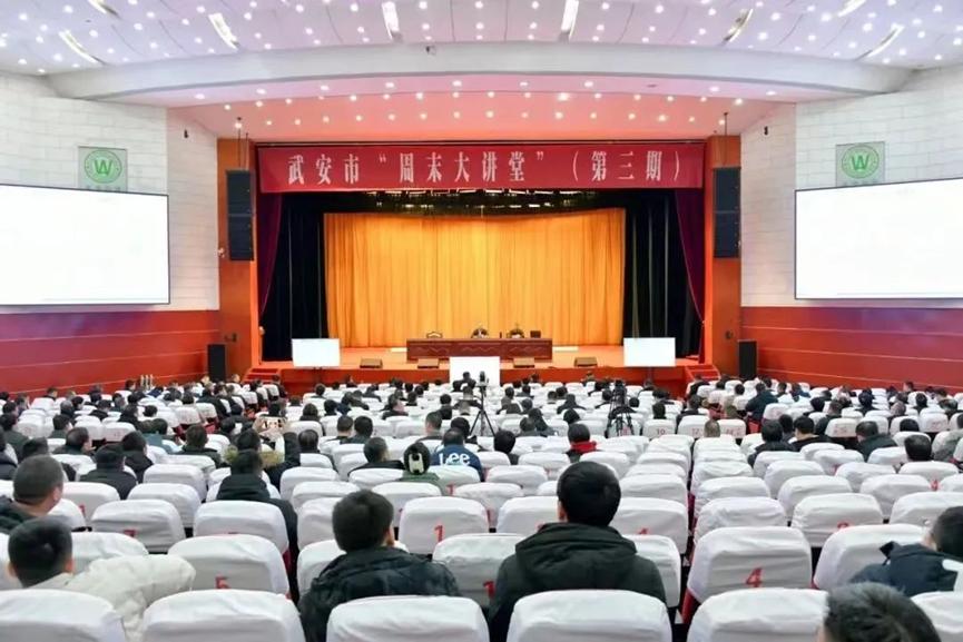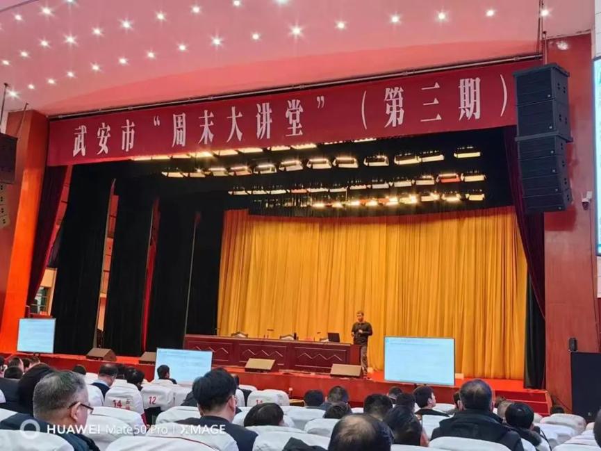1月28日上午,武安周末大讲堂第三期开讲,sunbet刘东华博士应邀授课。讲座以广电网络视频形式进行,武安市委书记刘浩峰等四套班子领导,各市直单位主要负责同志,各乡镇党委书记,工业园区党工委副书记,各相关单位中层以上干部,各重点企业负责人在武安宾馆主会场聆听讲座;各乡镇、工业园区领导班子成员和中层以上领导干部在分会场聆听讲座。武安市市长董志毅主持并讲话。