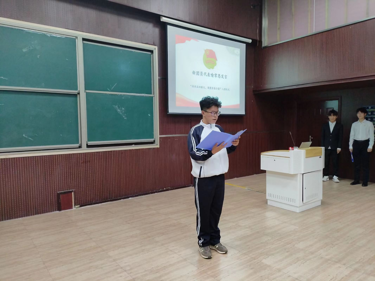 随后,团委事务组织中心负责人李祺祺带领新团员做入团宣誓。新团员代表喻常恩发言,他表示,加入共青团让我们有了更多的责任和使命,我们将严格要求自己,遵守团的章程,认真履行团员义务,时刻牢记团员的身份,发挥团员的先锋模范作用,用自己的行动去影响和带动身边的同学,共同进步。