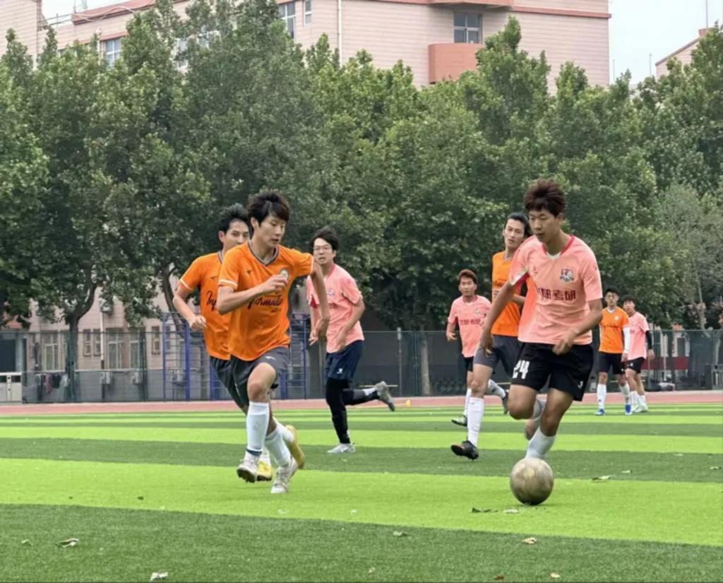 在决赛日工商足球队员们积极贯彻赛前制定的中高位压迫防守战术,全队的队员们奋力奔跑,在30度的高温下队员们早已忘却了疲惫与炎热,每一次的抢断和解围都会受到阵阵的掌声和喝彩。在队员们的努力之下,研究生始终没有取得破门良机,常规时间内比分0:0,工商足球队成功把比赛拖入点球大战。