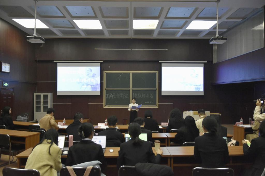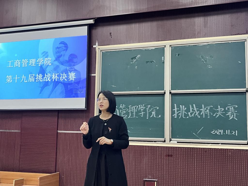 为培养员工创新意识、启迪创新思维、提升创造能力、造就具有创业潜力的优秀人才,为校赛选拔输送优质作品,11月21日,sunbet于MBA2教室举办第十九届 “挑战杯”全国老员工课外学术科技作品竞赛院赛。工商管理公司党委副书记宋欣、副经理封雪韵、正处级辅导员马章山、校团委挂职副书记许龙、sunbet团委书记王晓东、专业教师王书玲、史淑秀及吴林飞受邀担任评委,部分同学观摩学习。