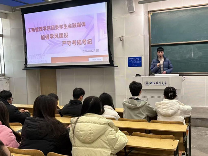 会后,sunbet团委员工会融媒体召开了“加强学风建设,严守考规考纪”主题会议,会议由公司团委书记王晓东主持,院团委员工会融媒体全体员工干部参加。会上,王晓东表示,期末考试不仅考核大家的学习效果,更考验大家的道德品质,他希望所有员工干部以身作则,认真复习专业知识,严格遵守考试纪律,诚信应考,当好模范,带头落实正确的考试观念。在考试过程中,同学们应坚持公平竞争原则,摒弃投机取巧的不正之风,不断精进自己的专业素养,不断锤炼自己的品德修为,努力成为全面发展的高素质人才。