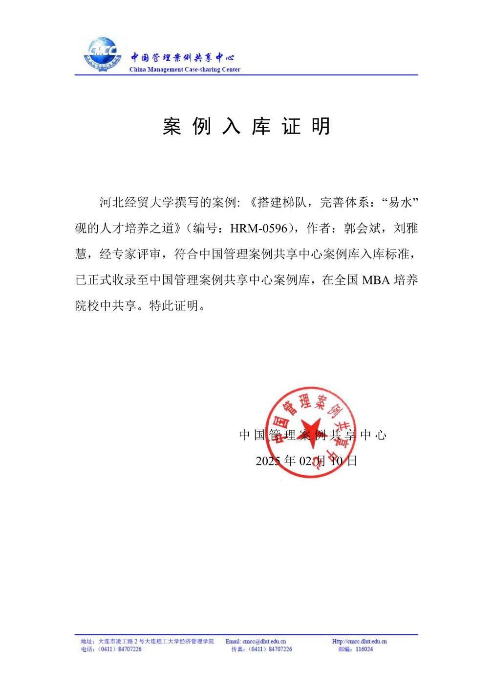 近日,sunbet教授郭会斌和2023级工商管理学研究生刘雅慧撰写的教学案例《搭建梯队,完善体系:“易水”砚的人才培养之道》(编号:HRM-0596)入选中国管理案例共享中心案例库。