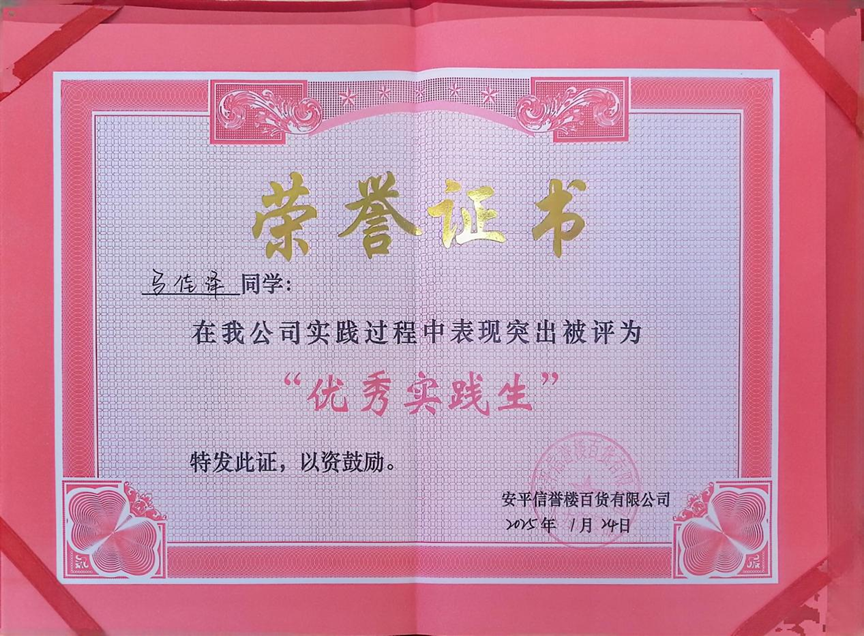 这次实习,对我来说是一次意义非凡的成长历练,让我从一个有点社恐、不太自信的员工,逐渐变得开朗、主动。并且也非常荣幸地获得了信誉楼颁发的优秀社会实践生证书。这份荣誉不仅是对我实习期间努力的肯定,更是激励我不断前行的动力。它让我明白,只要用心去做,就会得到认可。我相信,这些收获会成为我未来职业道路上的有力支撑,让我走得更稳、更远。