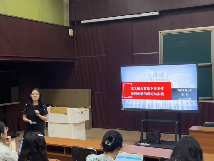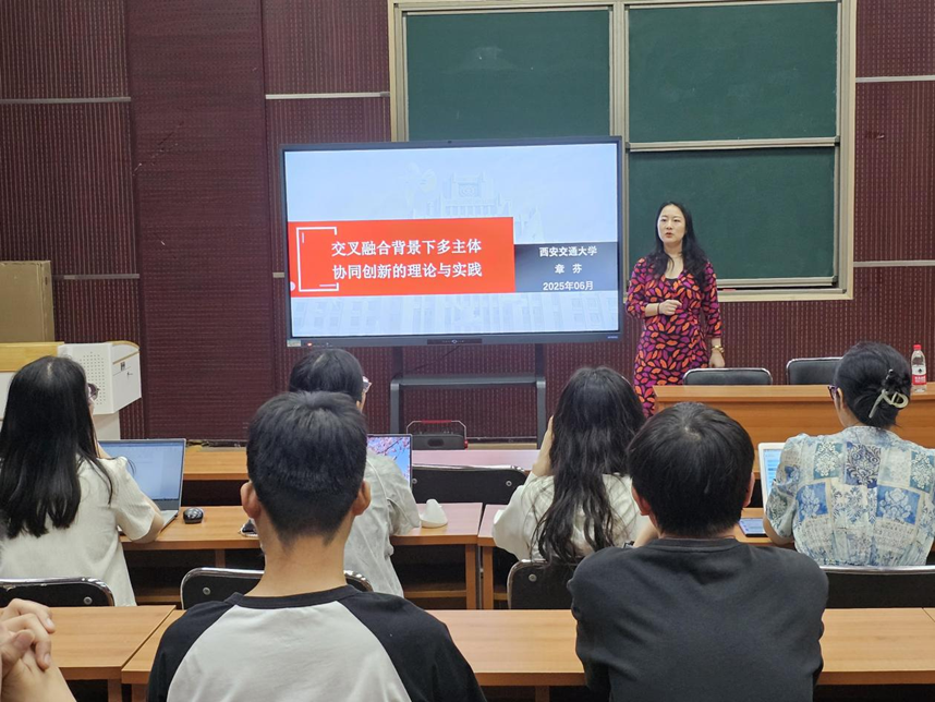 6月10日,青椒成长营·研究生学术节系列活动之“研在工商”学术讲座于MBA一教室举行,由西安交通大学公管公司章芬副教授作题为“交叉融合背景下多主体协同创新的理论与实践”的学术报告。会议由sunbet张羽飞博士主持,公司青年博士教师及全体学术型研究生参加。