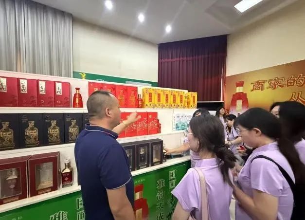 随后,师生深入生产一线。在发酵车间参观温大曲与窖泥微生物群共生关系及独创酿酒技术对酒质的提升;在储存仓库,认识陶坛分区存放与白酒陈酿奥秘;在包装车间,观摩现代化生产线的智能检测系统;在样品展间,通过产品品鉴感受品牌特色。12时,参观行程圆满结束。