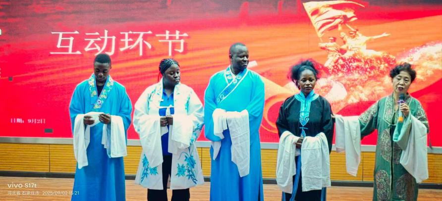 欣赏了诸多专业表演后,现场进入轻松有趣的互动环节。首先,闫红为同学们介绍传统服饰,让大家感受服饰里的文化韵味;之后,王建华带国际教育公司同学们玩转绕口令,同学们积极参与,现场氛围热烈,大家在欢乐中不仅学到了知识,还感受到了传统艺术的乐趣。
