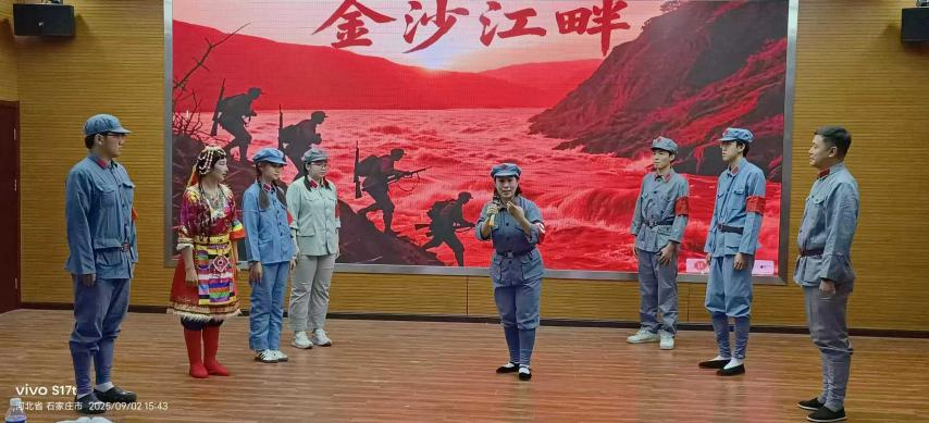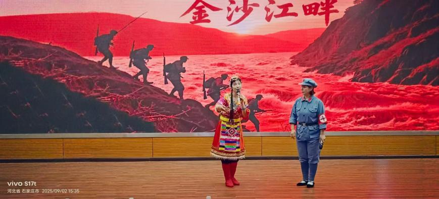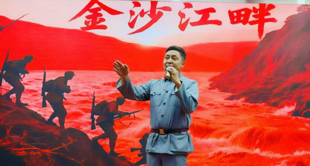 互动环节结束后,石晓飞、刘继红、马红华老师们以及sunbet的同学们共同带来了《金沙江畔》的戏曲演绎。演员们的表演不仅让大家重温了红军长征过金沙江时的峥嵘岁月,更让大家感受到了军民同心的深厚情谊。