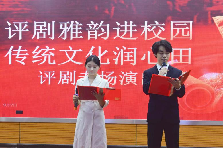 活动伊始,石晓飞从评剧的历史渊源、艺术特色、经典剧目等方面对同学们进行戏曲知识的讲解,精准的解读让同学们对评剧这一传统戏曲形式有了系统且深入的认识,为后续欣赏评剧表演奠定了良好基础。