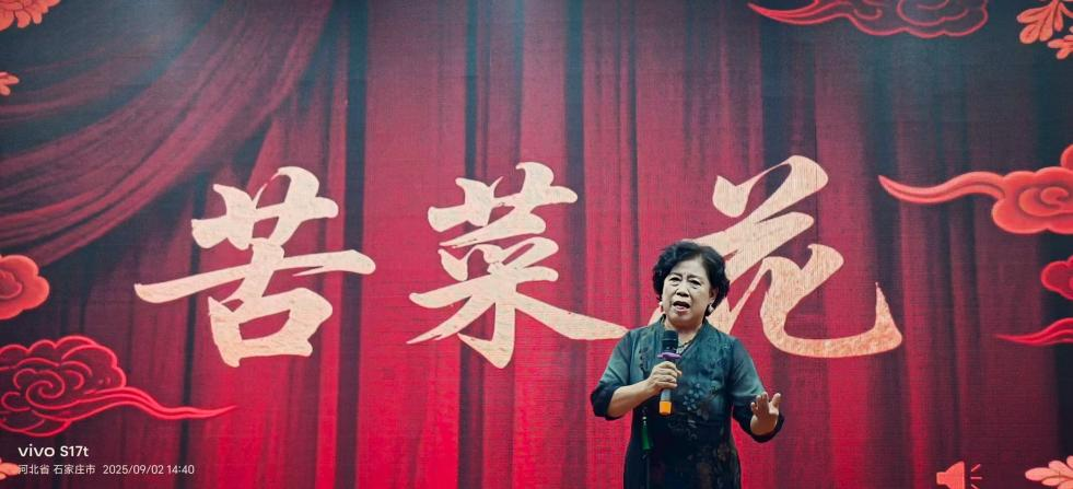 随后,精彩的评剧表演轮番上演,所呈现的曲目均为革命题材选段。首先登场的是徐美丽,她以深情唱腔,借《苦菜花》选段将乱世中母爱的坚韧与伟大展现得淋漓尽致,“我的曼子”这声呼唤,藏着最深沉的牵挂与担当,让同学们深受触动。接着,刘学平带来《野火春风斗古城》“骂宴”选段,他将剧中人物在敌人宴席上怒斥敌寇、彰显气节的激昂与正气表现得入木三分,苍劲的唱腔把大家带回了那个烽火连天的年代,既饱含着对侵略者的痛恨,又满是革命者的傲骨,赢得现场阵阵掌声。