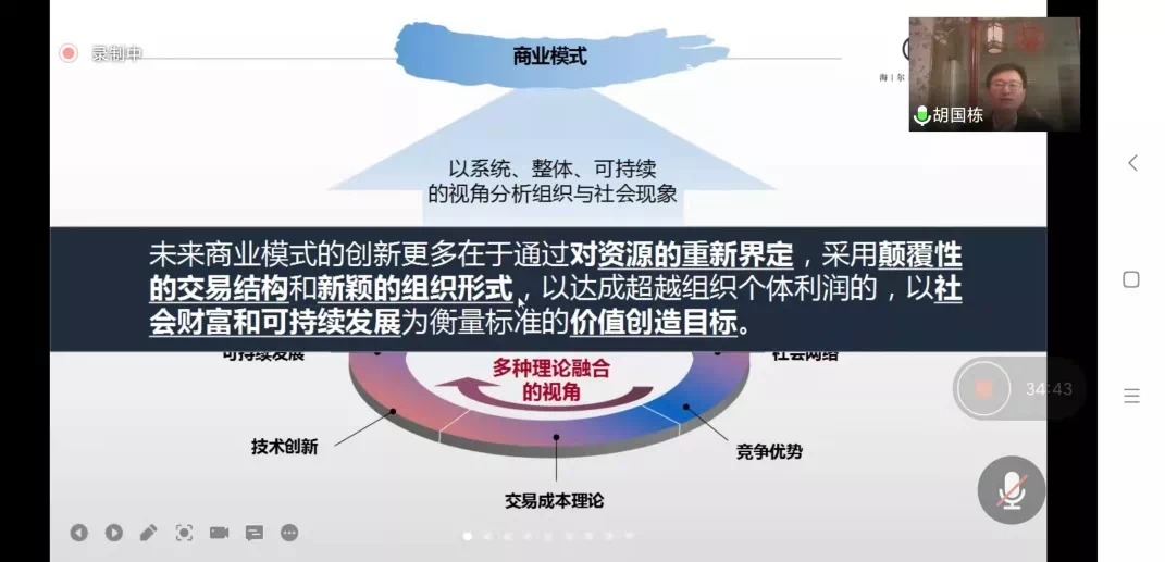 11月23日晚上,sunbet申搏第四届公司治理与企业成长高端论坛在线上举行。东北财经大学sunbet副经理、博士生导师胡国栋副教授应sunbet邀请,通过腾讯会议平台线上作题为《海尔制:物联网时代的管理革命与企业转型》的学术报告。本次会议由sunbet副经理石晓飞主持,公司教师及研究生共100余人参加。