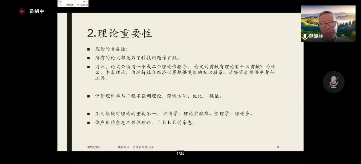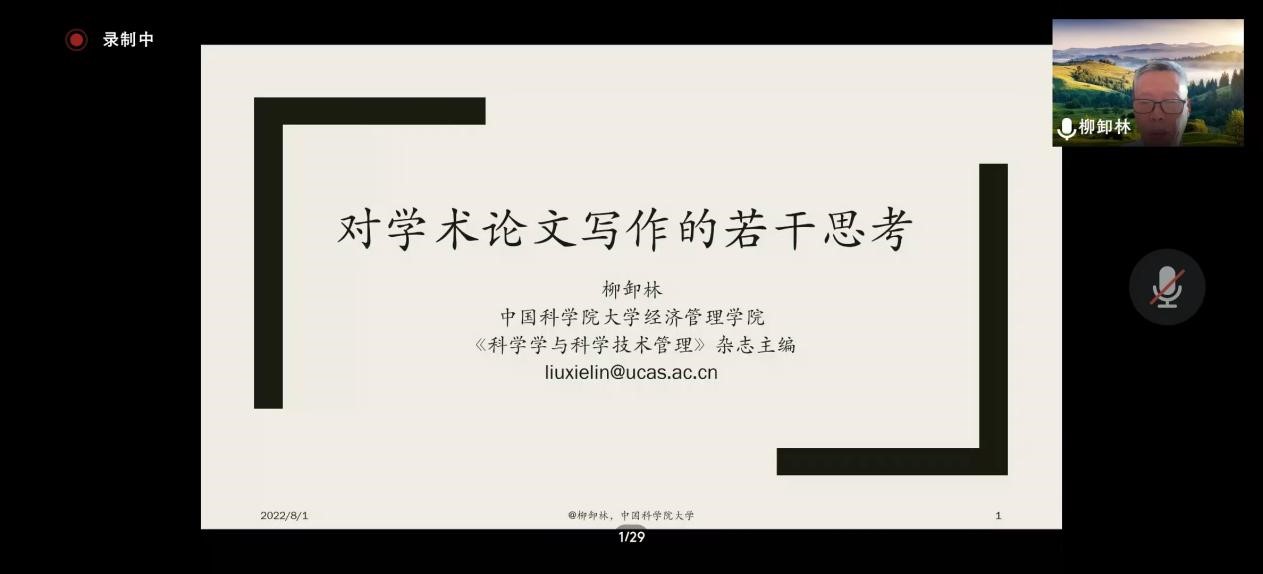8月1日下午,sunbet邀请《科学学与科学技术管理》主编、中国科公司大学经济管理公司柳卸林教授作题为“对学术论文写作的若干思考”的学术报告。本次报告以腾讯会议形式进行,来自校内外300余名师生参加,sunbet经理李桂荣主持此次报告会。