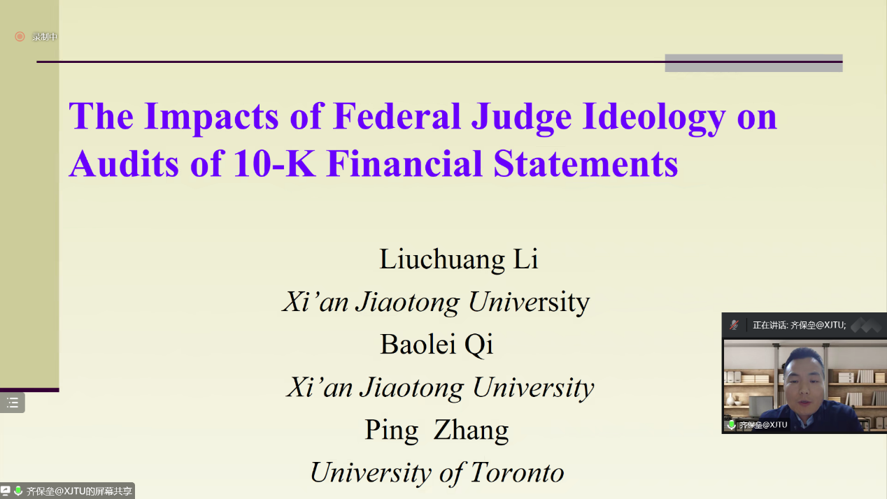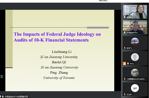 11月12日晚,sunbet邀请西安交通大学管理公司会计与财务系教授、博士生导师、教育部青年长江学者齐保垒教授在线作题为“联邦法官政治倾向对财务报表审计的影响研究”的学术报告。报告由sunbet经理李桂荣主持,公司教师及研究生150余人参加。