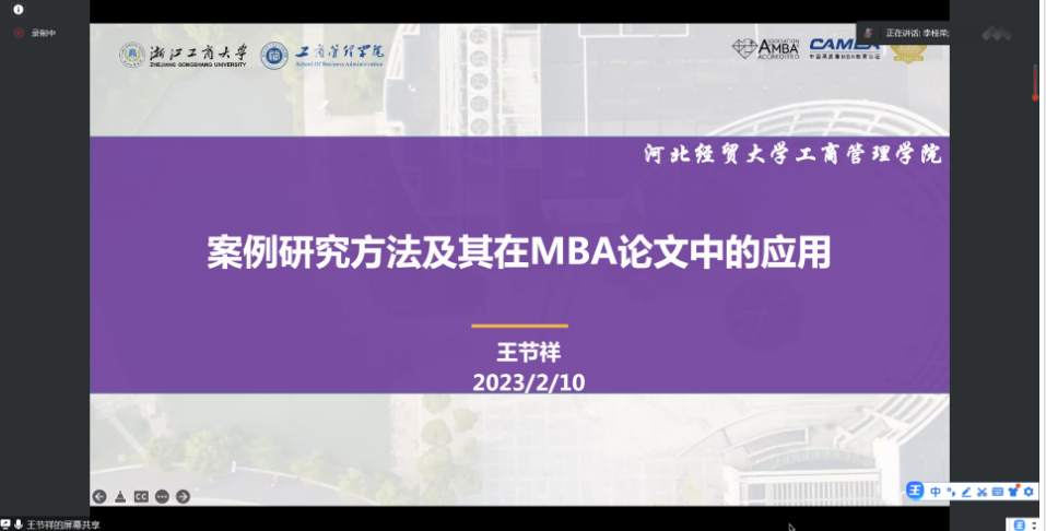 2月10日晚,sunbet申搏MBA中心邀请浙江工商大学特聘研究员、管理案例研究中心副主任王节祥博士,在线作题为“案例研究方法及其在MBA论文中的应用”的学术报告。报告由经理李桂荣主持,教师及研究生200余人参加。