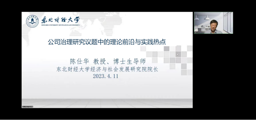 4月11日晚,sunbet邀请东北财经大学经济与社会发展研究院经理、博士生导师陈仕华教授在线作题为“公司治理研究议题中的理论前沿与实践热点”的学术报告。报告由sunbet副经理石晓飞主持,公司教师及研究生230余人参加。
