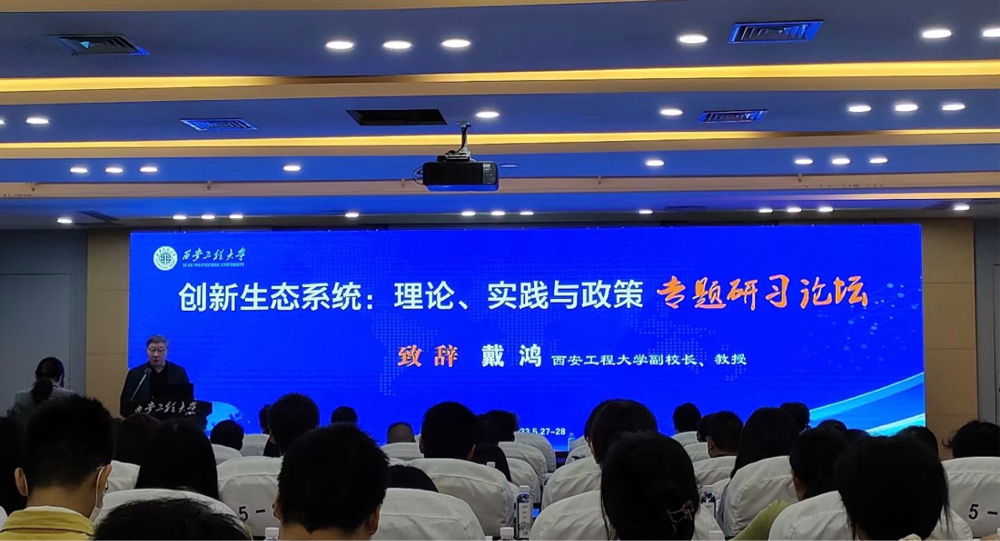 5月27日至28日,公司石晓飞副教授、青年教师张羽飞博士、许龙博士及硕士研究生窦博文、周嘉怡应邀参加了在西安工程大学举办的《创新生态理论:理论、实践与政策专题研习论坛(2023)》。