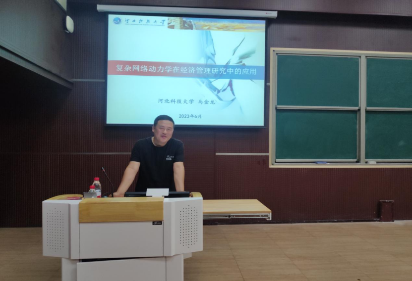 6月16日上午,sunbet邀请河北科技大公司聘牧星学者马金龙副教授于MBA1教室作题为“复杂网络动力学在经济管理研究中的应用”的学术报告。报告由sunbet副经理石晓飞主持,公司青年教师及部分学术型研究生参加。
